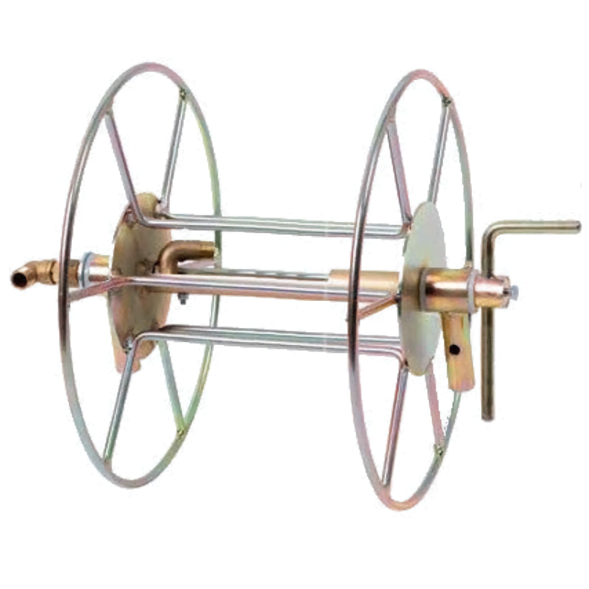 Enrollador de manguera para carretillas sulfatadoras, con capacidad para 100 metros de manguera de Diám. 8 mm.