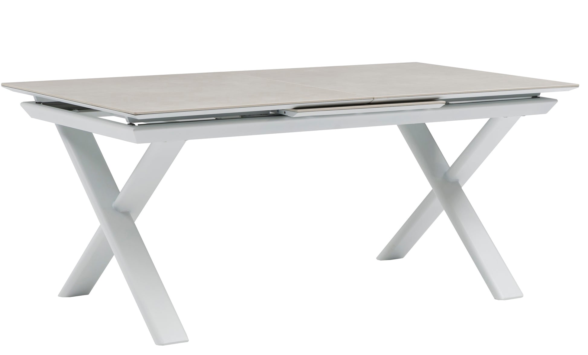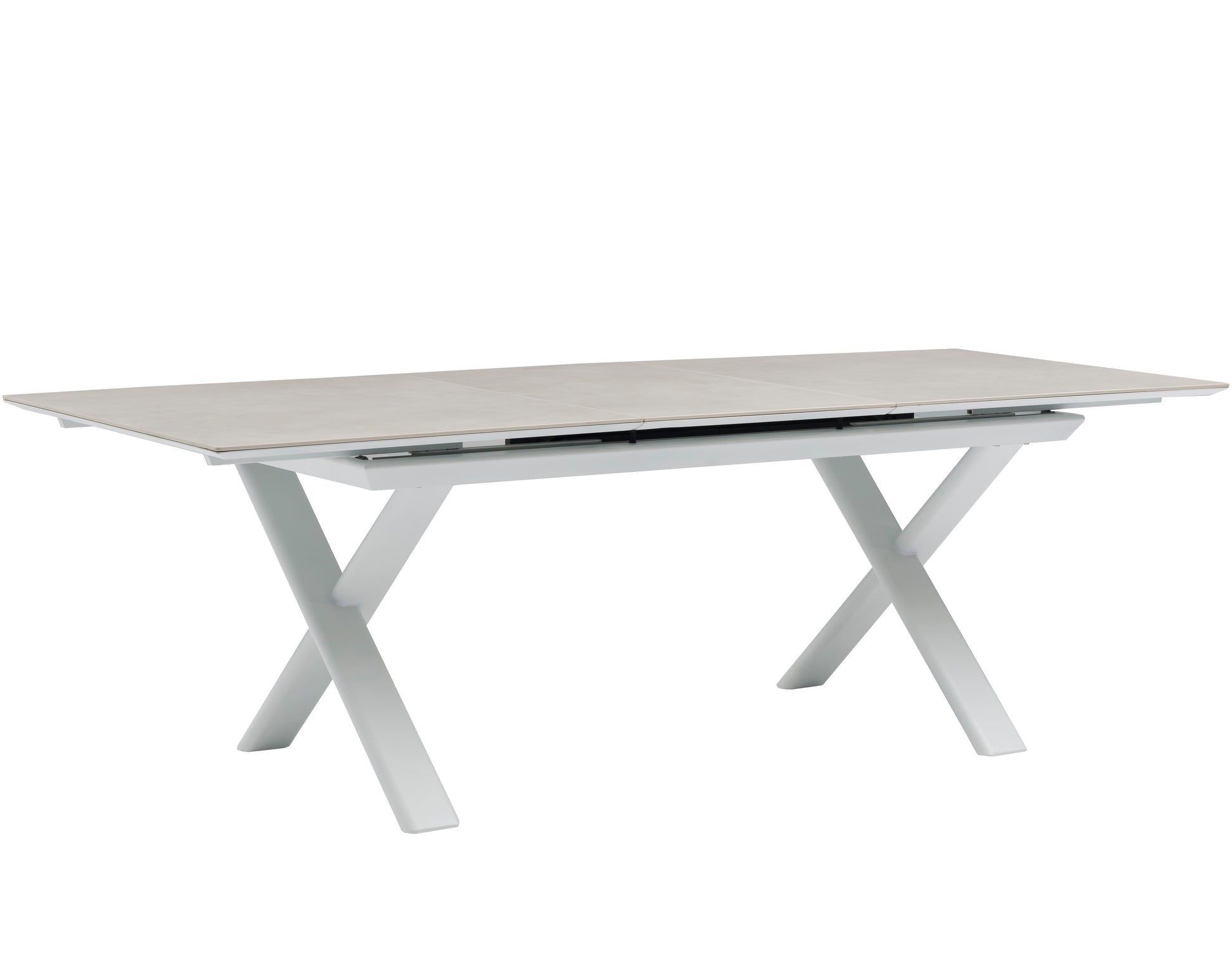 Mesa extensible Carson 100x180/240 cm aluminio blanco top mesa porcelánico gris
