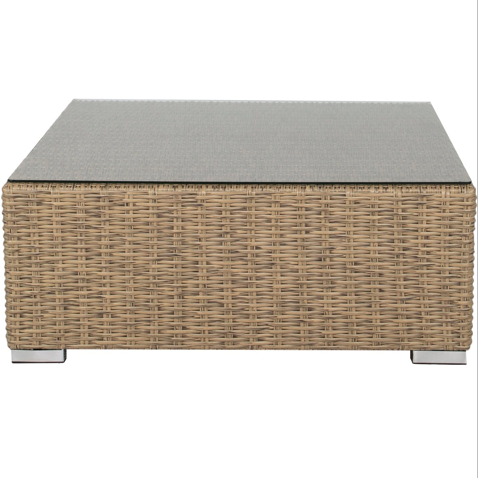 Mesa / Puf California aluminio y ratán sintético con cristal templado de 5 mm.