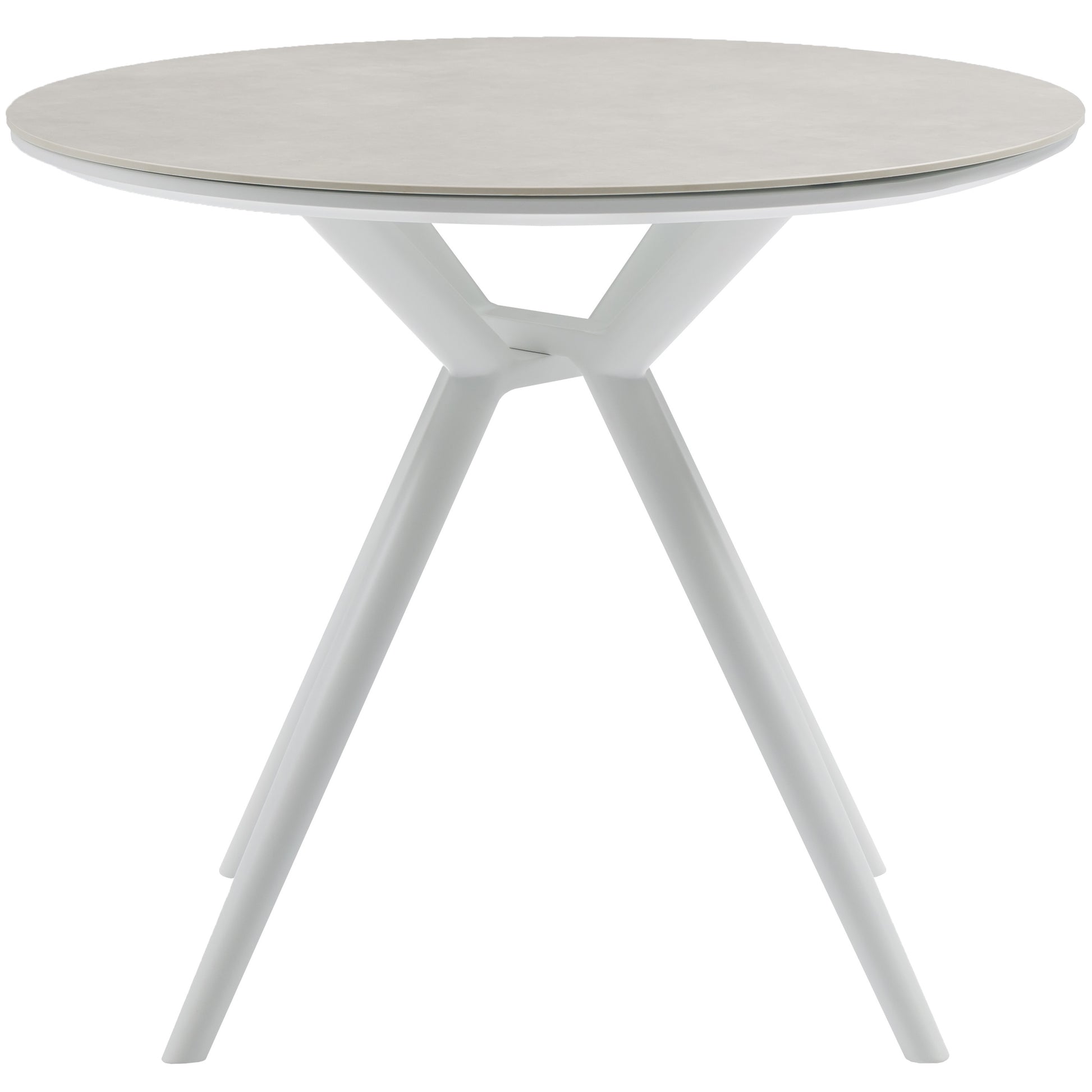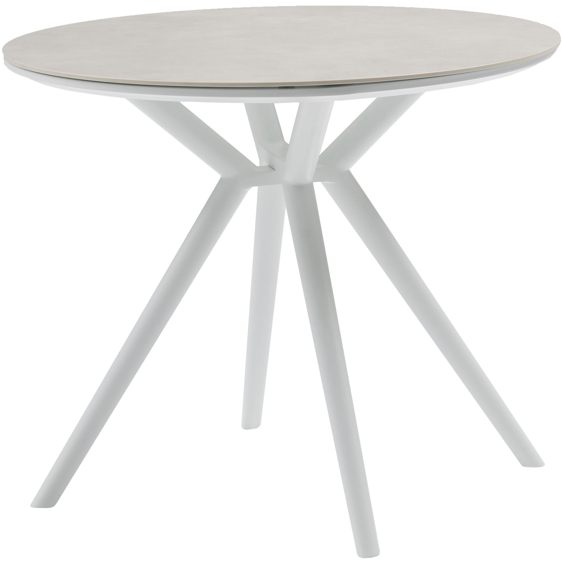 Mesa redonda Carson Ø 90cm aluminio blanco top mesa porcelánico gris.
