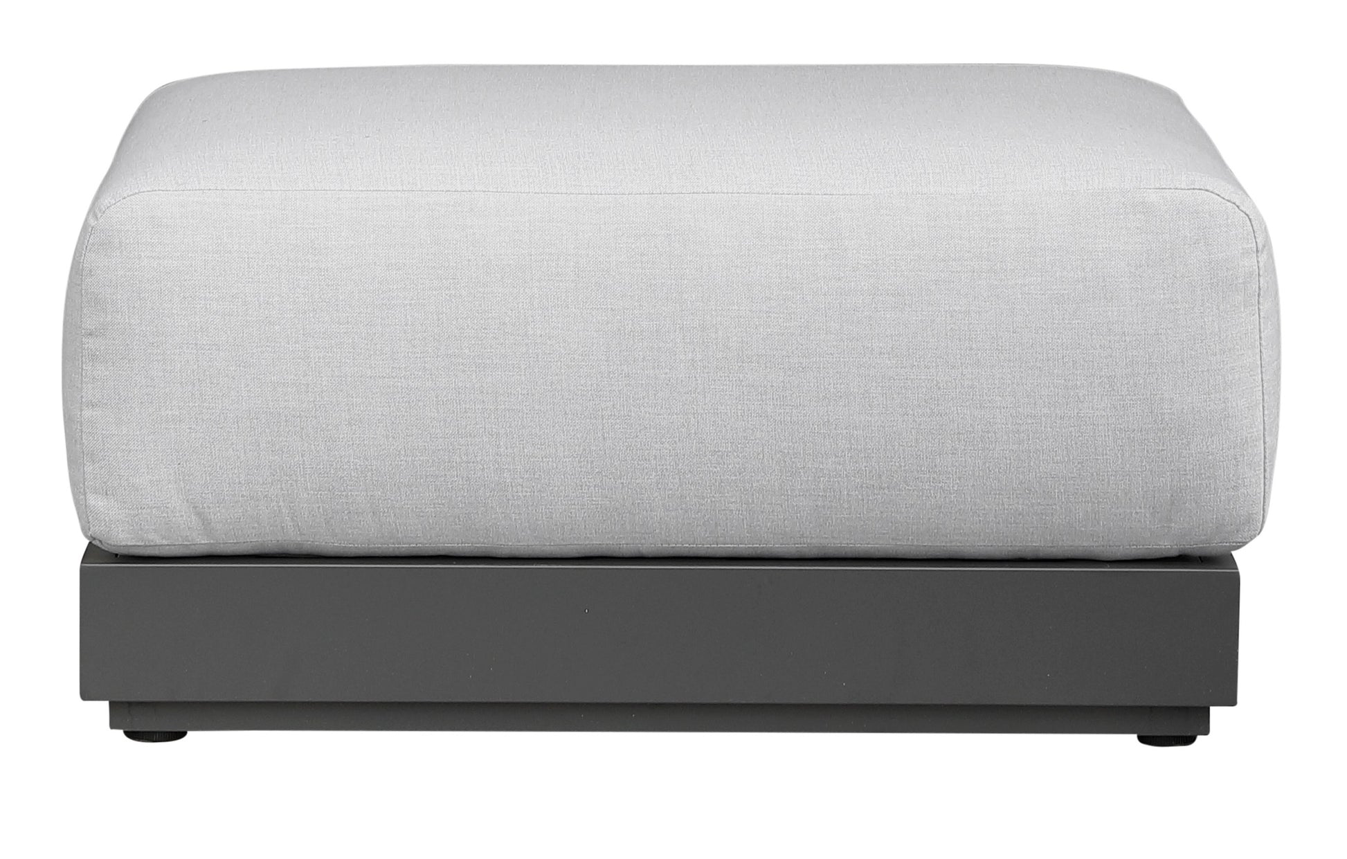 Módulo puff Onix en aluminio antracita con cojinería gris medio – versatilidad máxima para tu configuración contemporánea. Este módulo sin respaldo funciona como puff, otomana, asiento adicional o mesa auxiliar, siendo la pieza más versátil del sistema modular Onix.