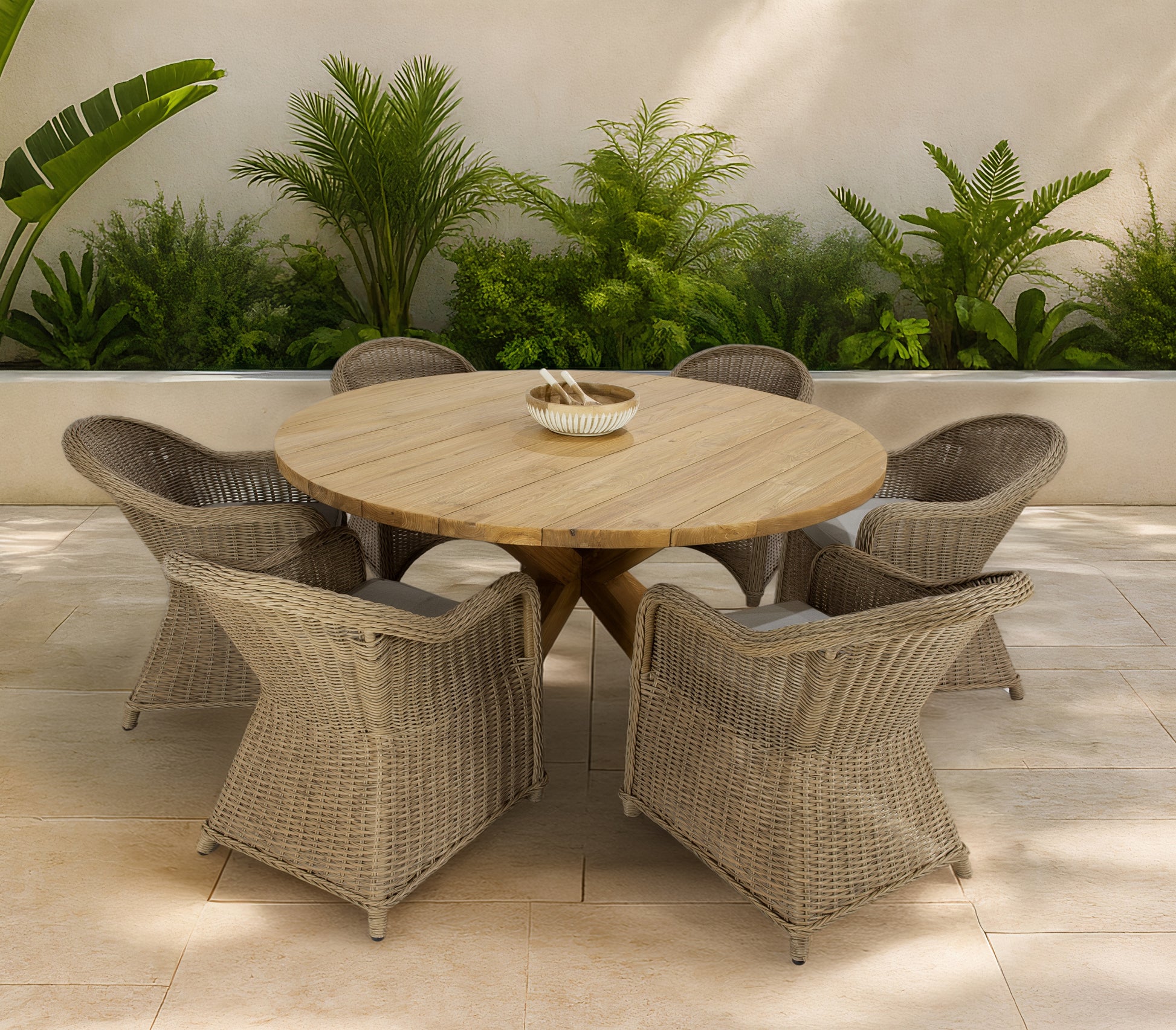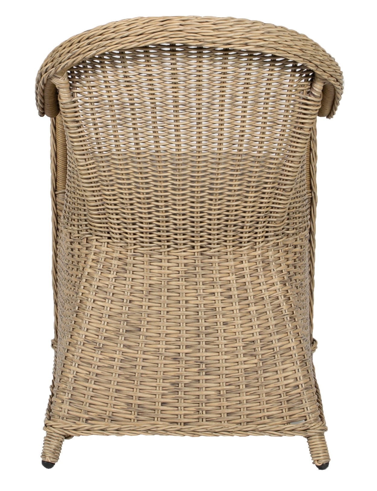 Sillón con brazos Córdoba. Estructura en aluminio lacado y rattan sintético halfround Ø 5 mm efecto nature con cojín de asiento de 5 cm..