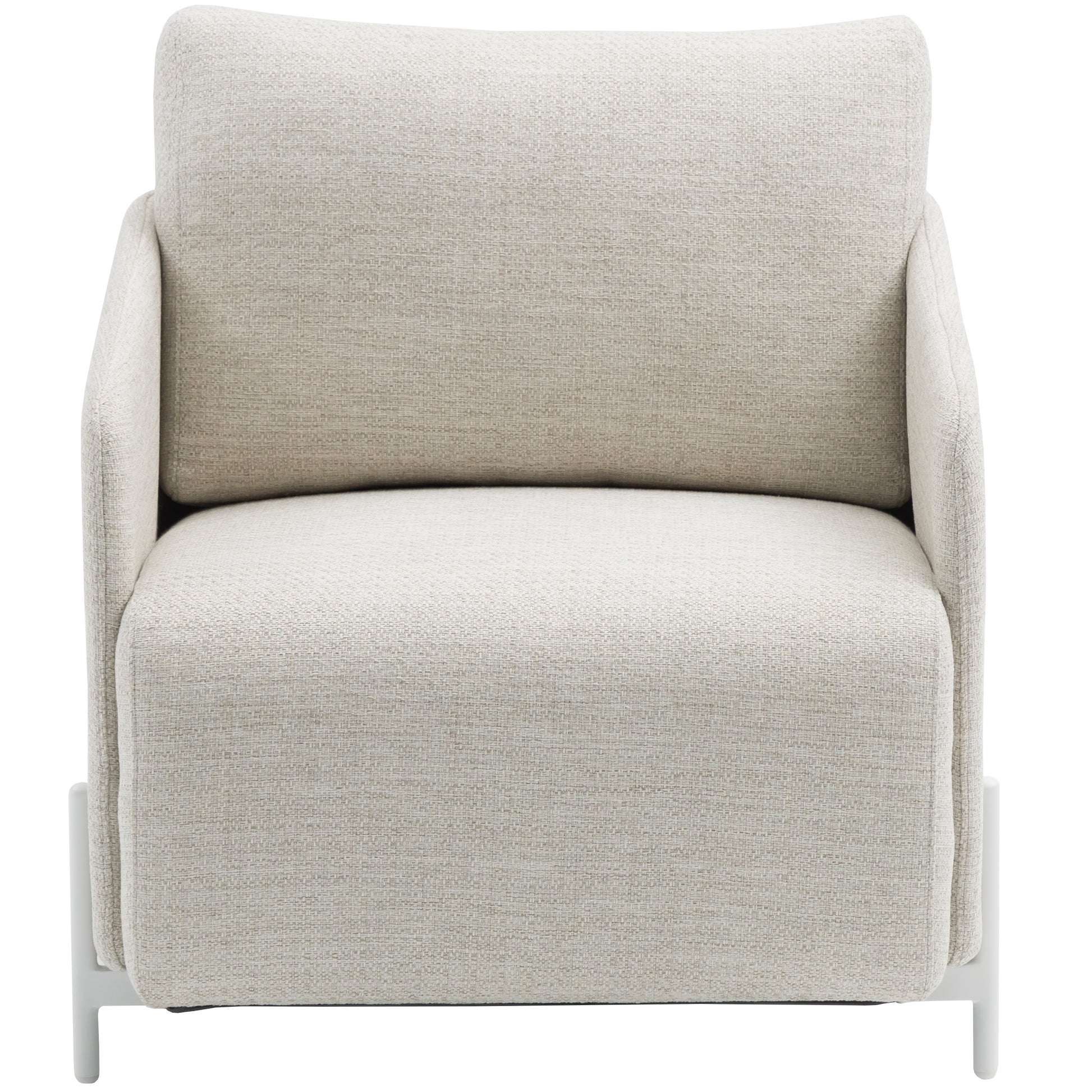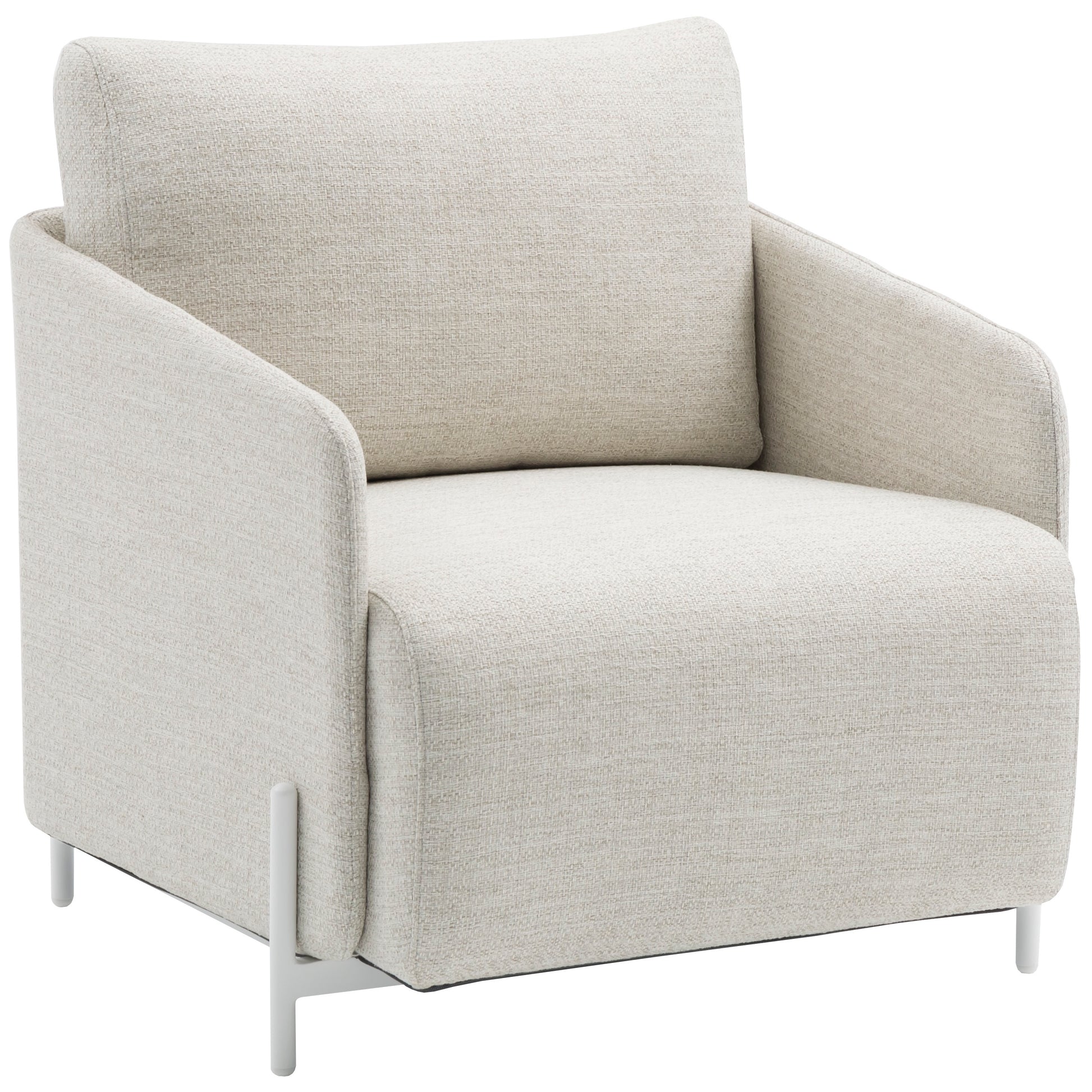 Sofá 1 plaza Corfu. Estructura en aluminio blanco combinado con textil en olefina color beige. Interior en espuma DRYFOAM..