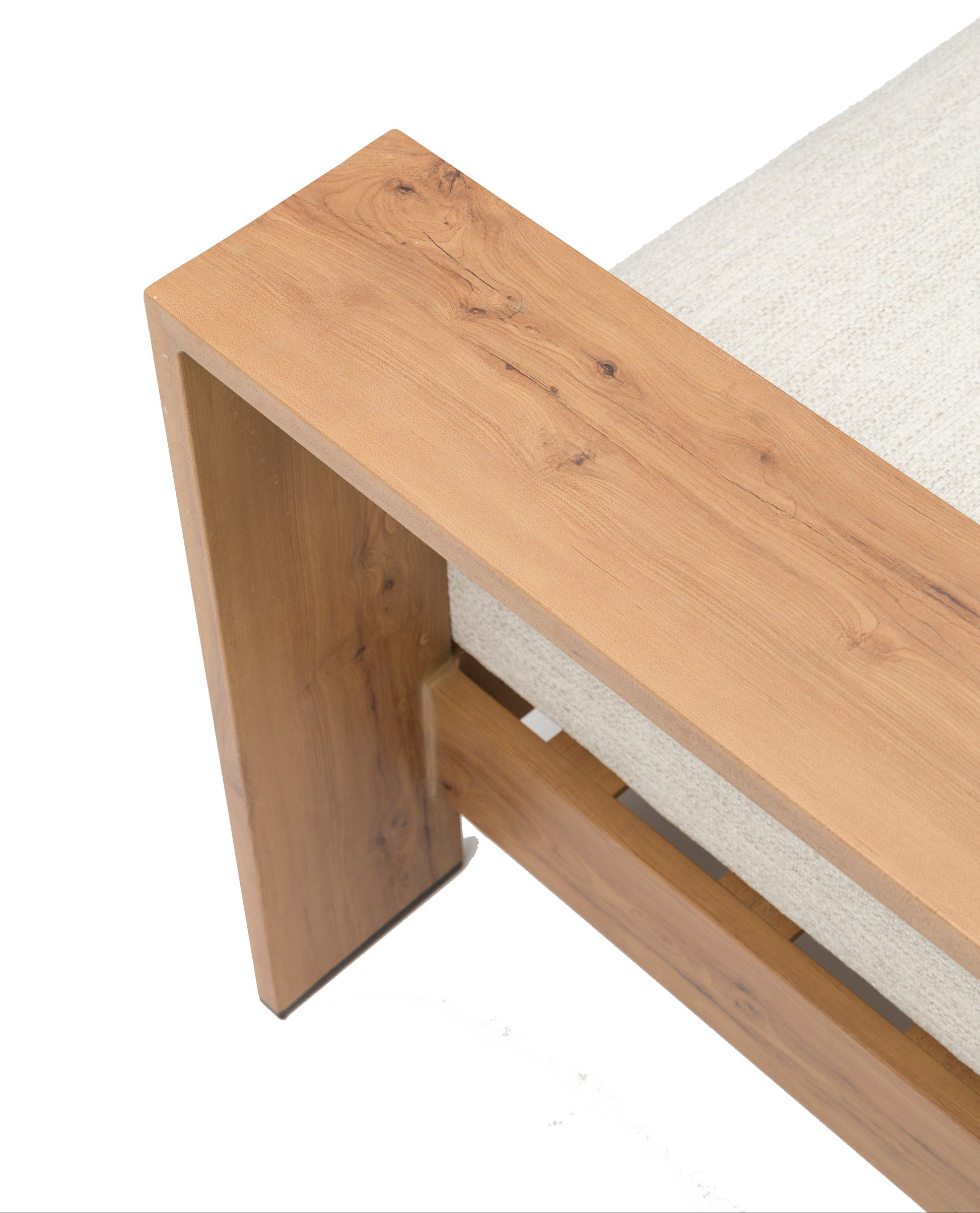 Cada estructura refuerza sus puntos de carga con tornillería y apliques de primera calidad y listones sobredimensionados. Incorporamos materiales premium como Textilene Batyline, tapicerías waterproof, espumas de alta densidad y encimeras de cristal templado. Todo diseñado para lograr un mueble resistente, cómodo y funcional en cualquier espacio exterior.