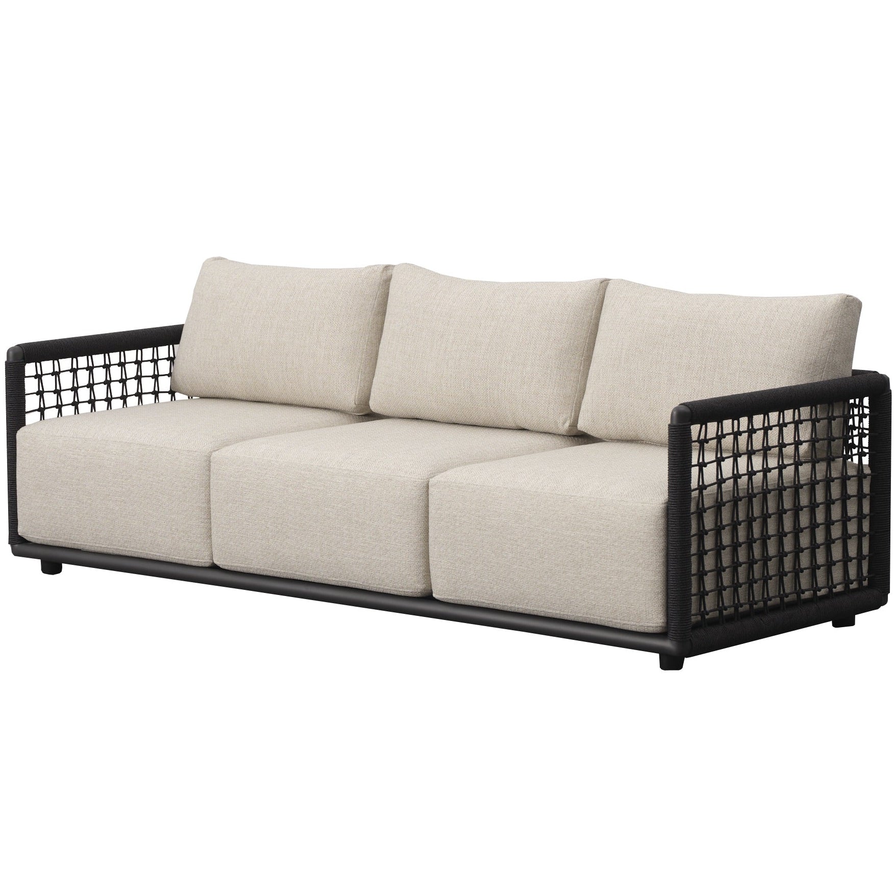 Sofá 3 plazas Santa Ana. Estructura en aluminio color antracita combinado con cuerda antracita 6 mm. Cojines de asiento y respaldo color beige..