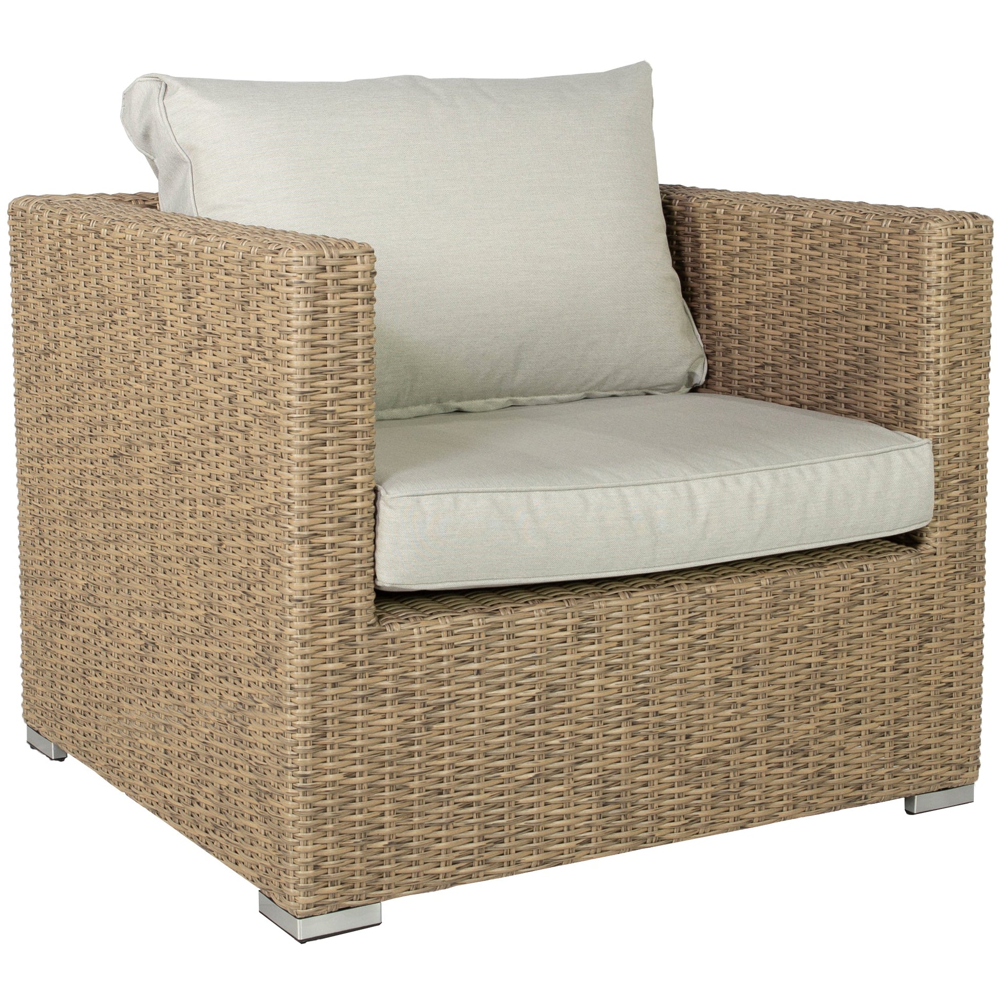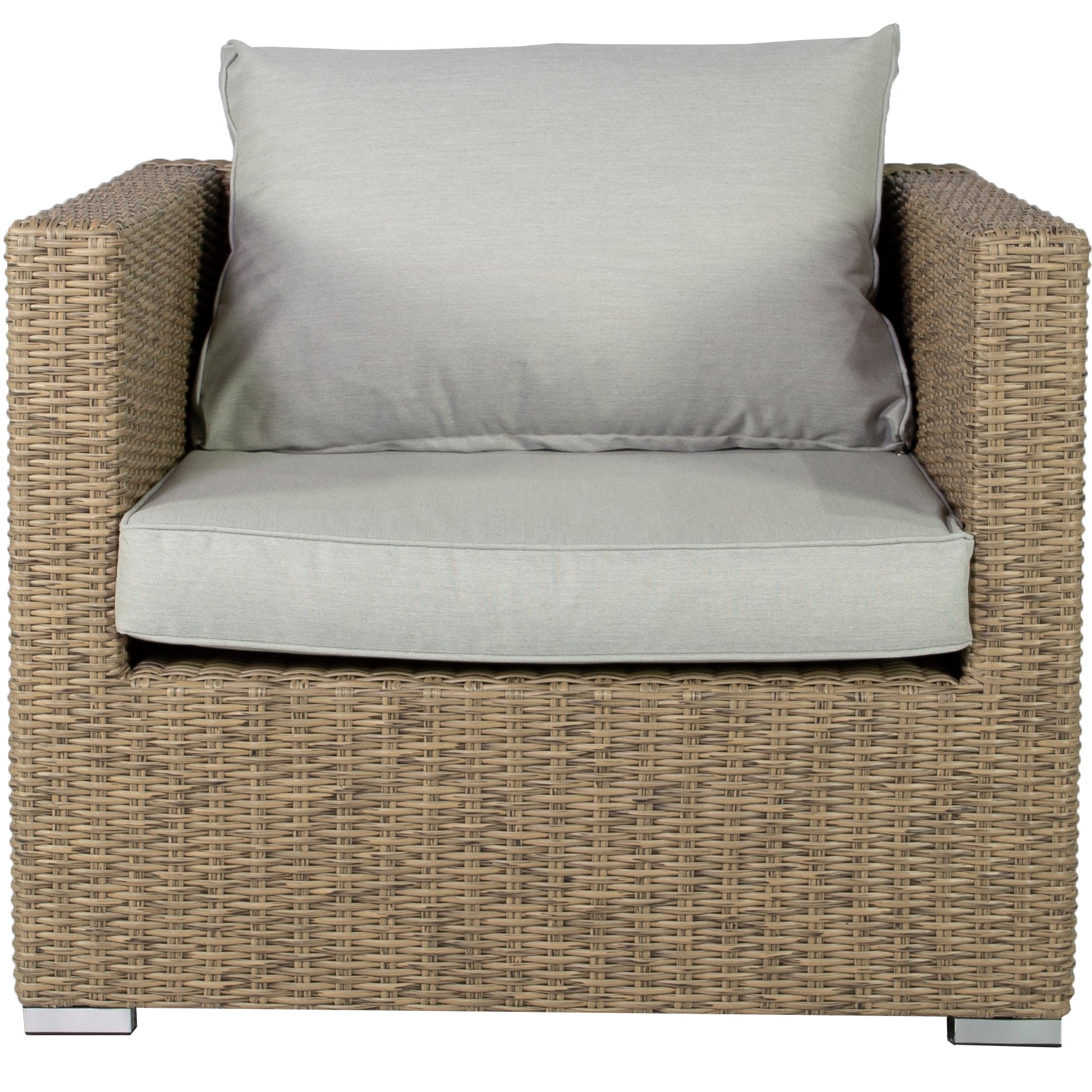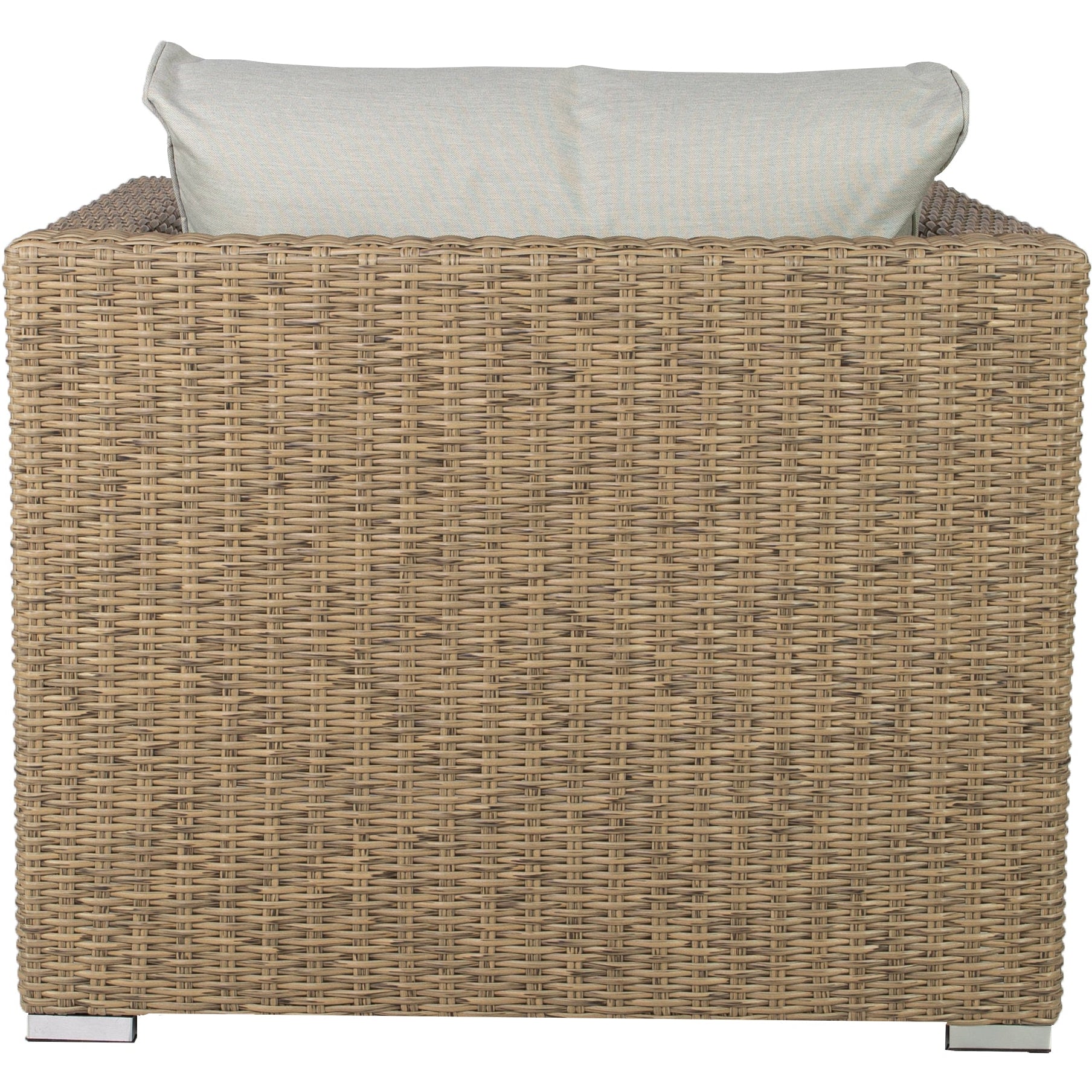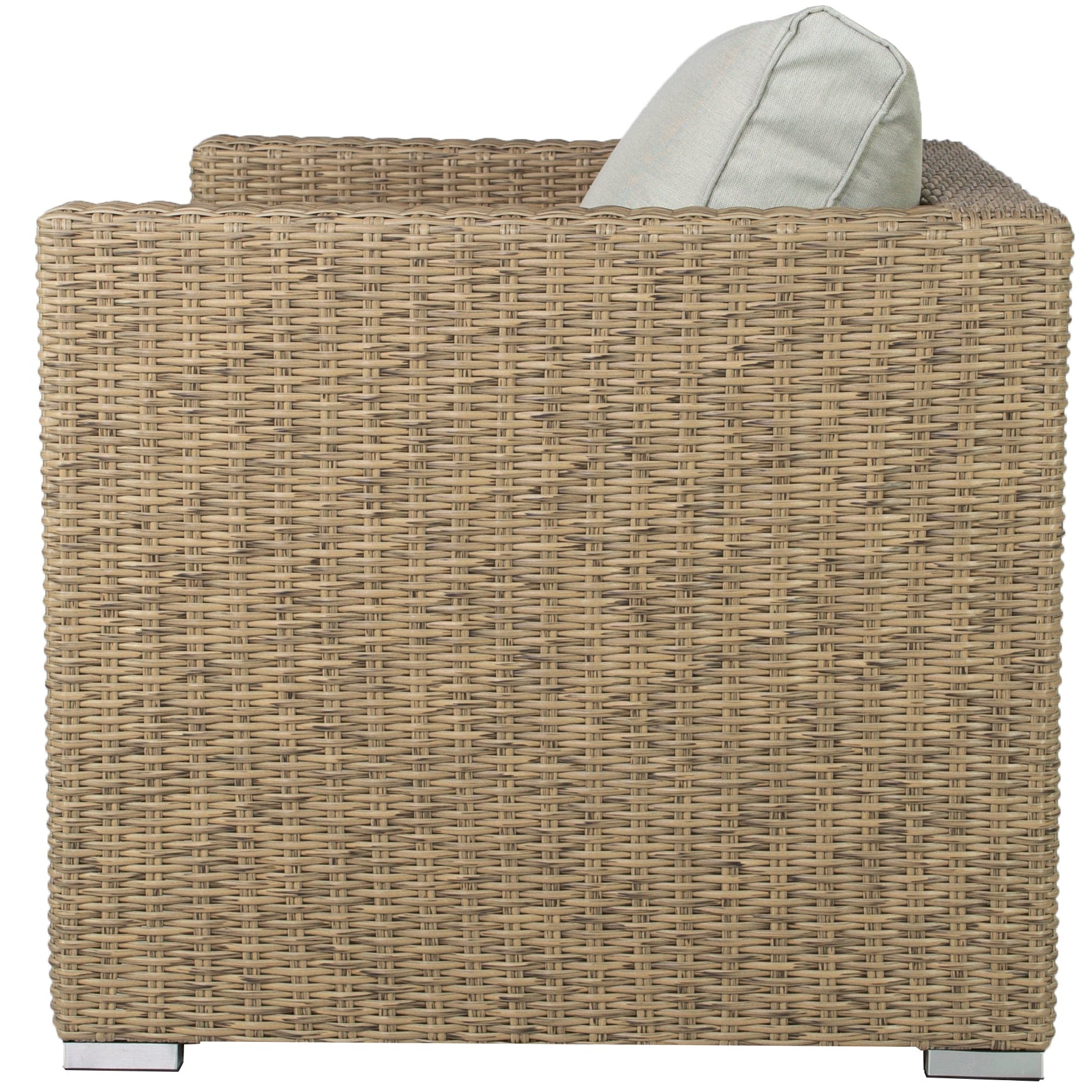 Sofá de 1 plaza California. Estructura en aluminio lacado y ratán sintético halfround diam. 5 mm efecto nature con cojín de asiento (12 cm) y respaldo (20 cm) color gris medio..