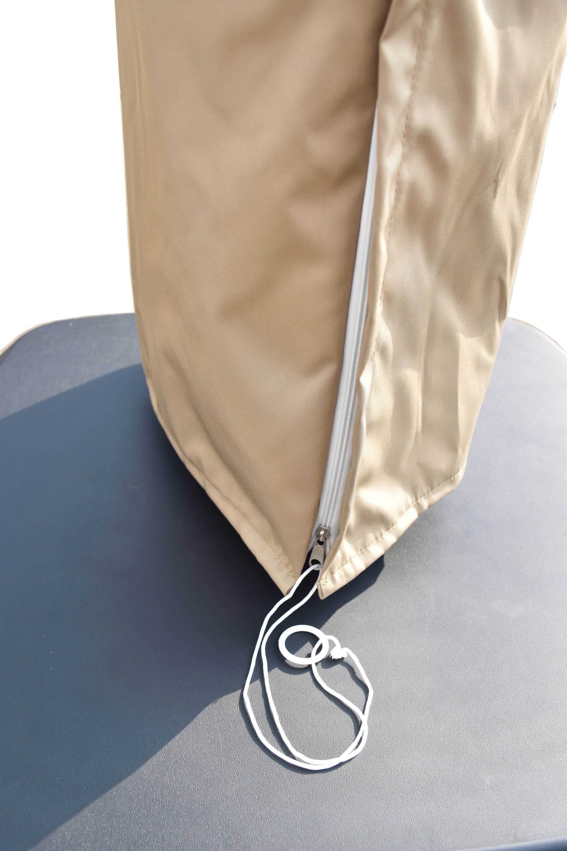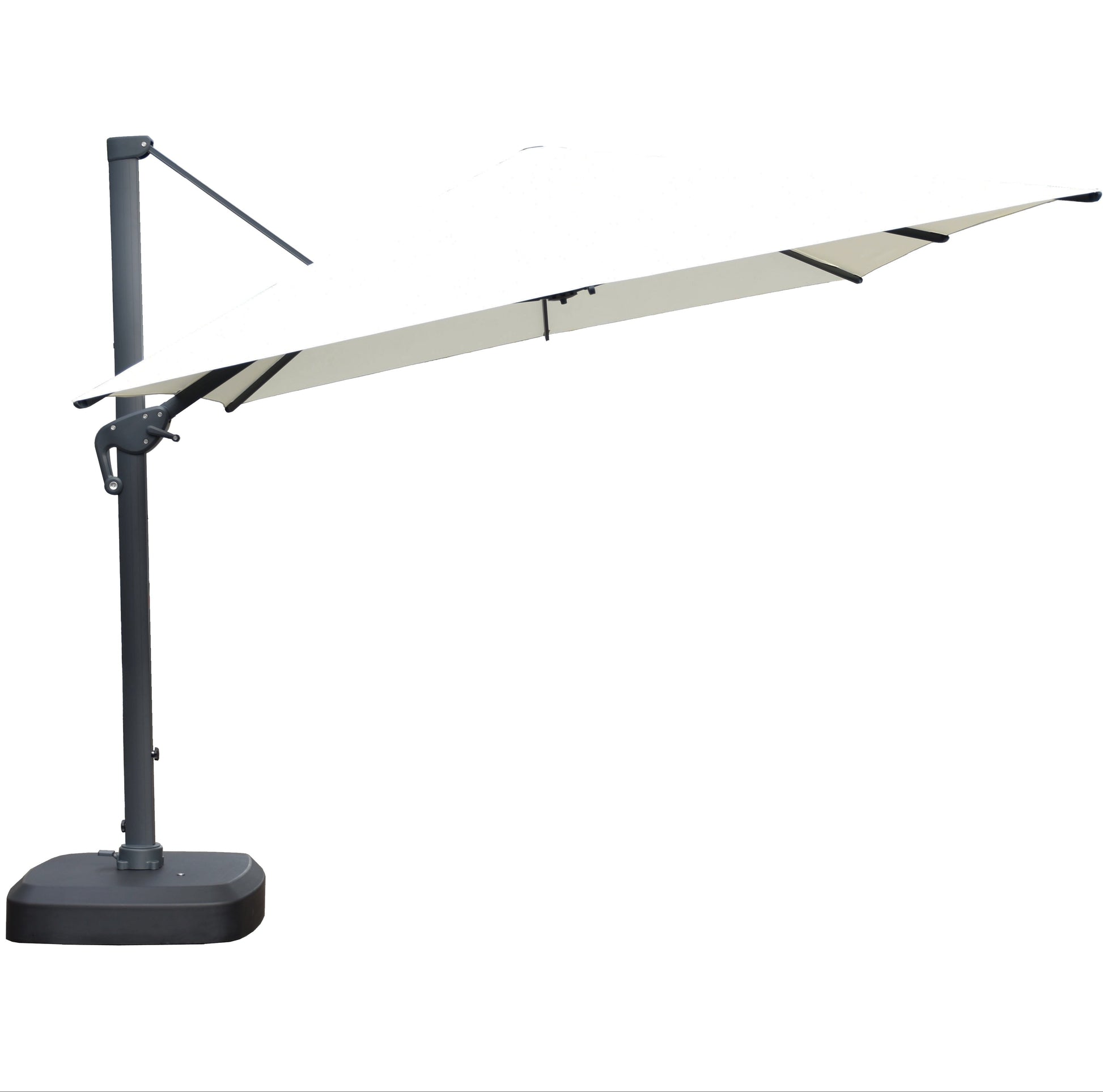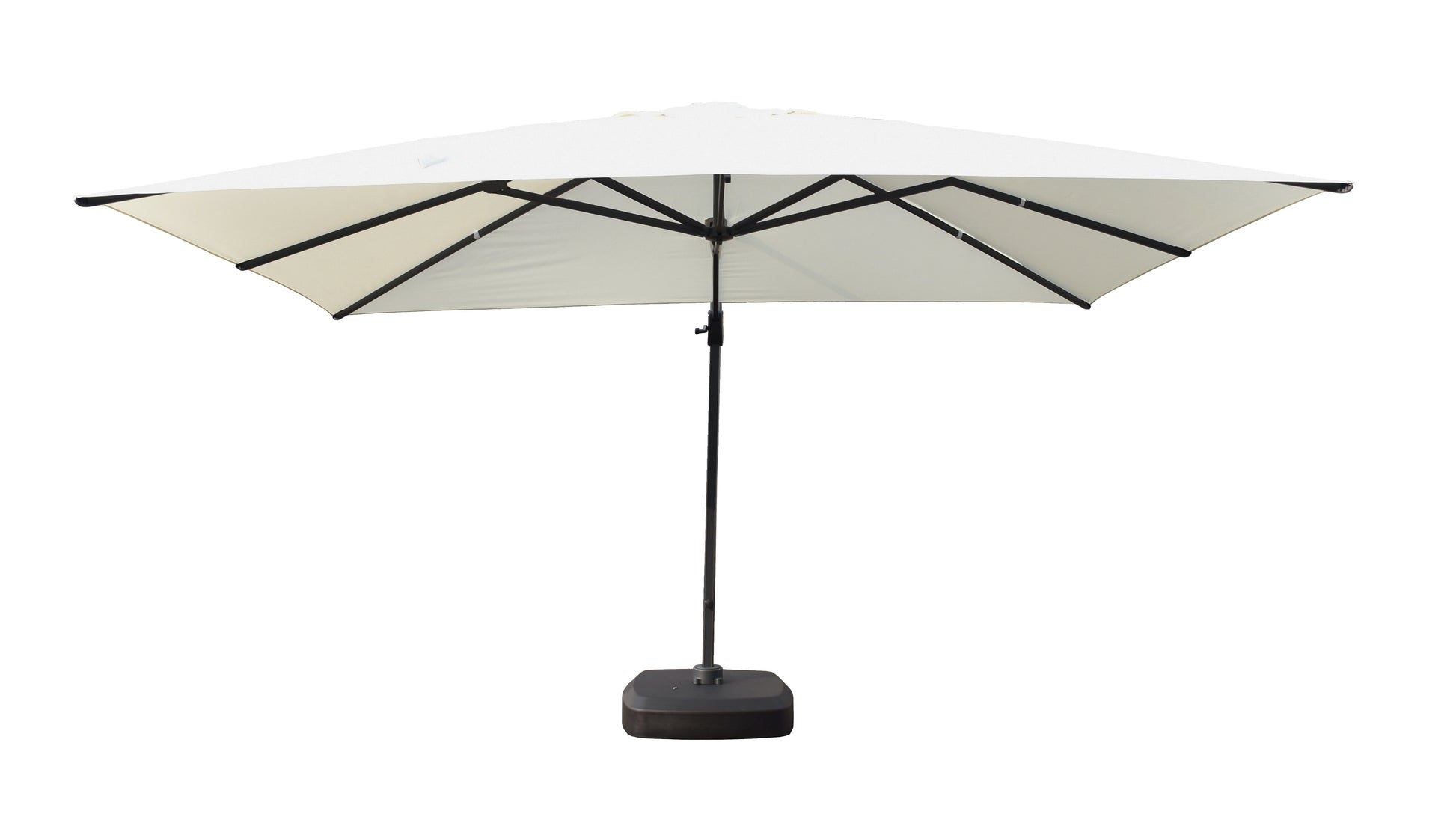 Sombrilla Kioto rectangular con lona media 300x400 cm. Estructura en aluminio con mástil de 60x100 mm color antracita y cubierta color crudo. Sistema de rotación 360º orientable a 5 posiciones Base con ruedas Funda protectora incluida.