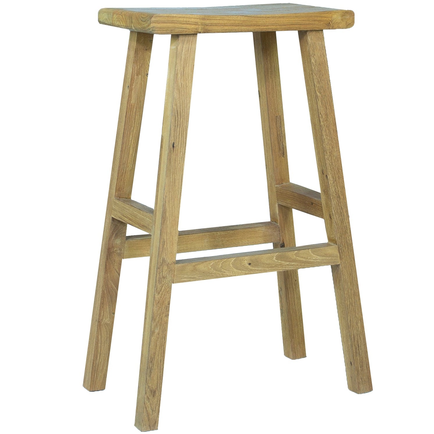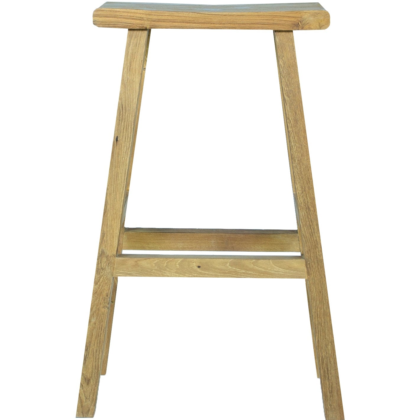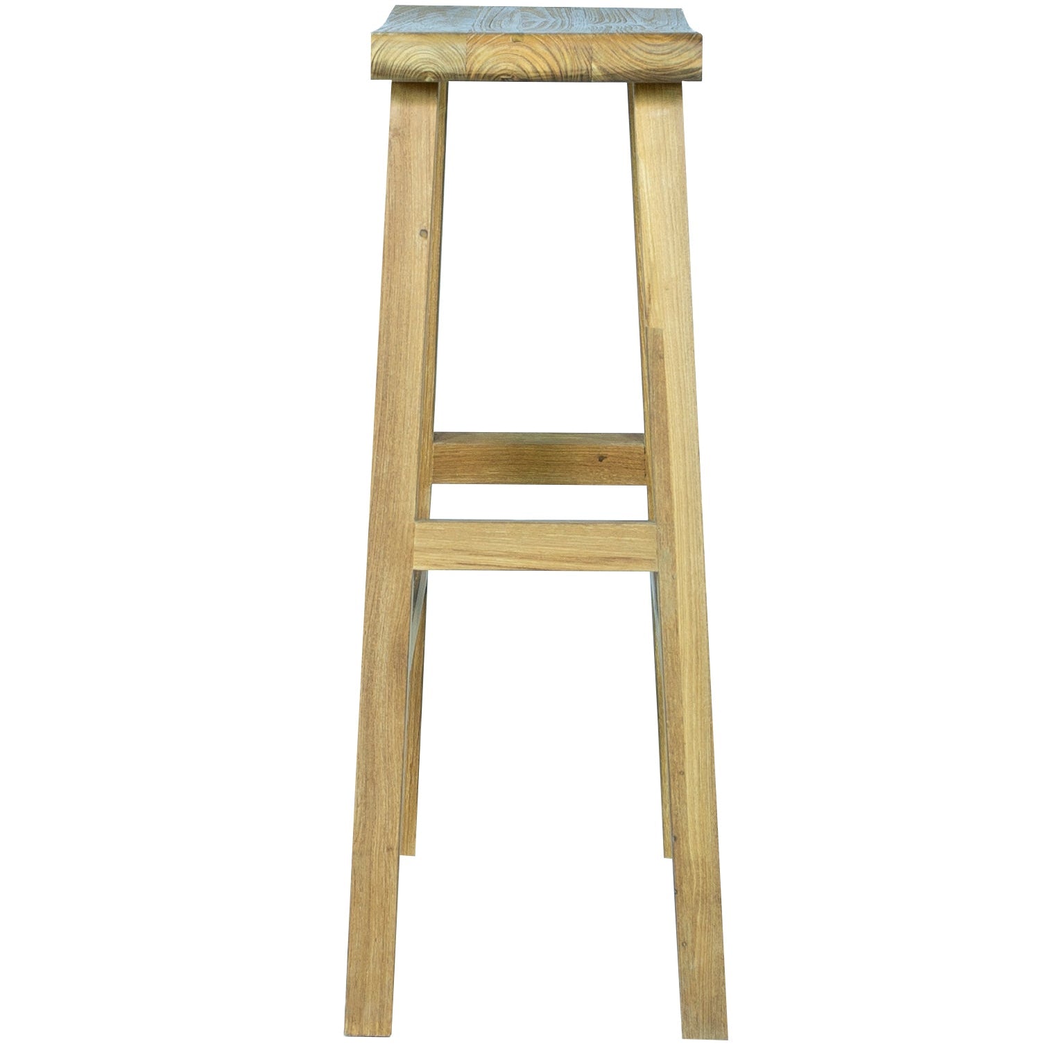 Taburete alto Pyu. Estructura en teca reciclada con asiento macizo de 4 cm de grosor. Requiere montaje..